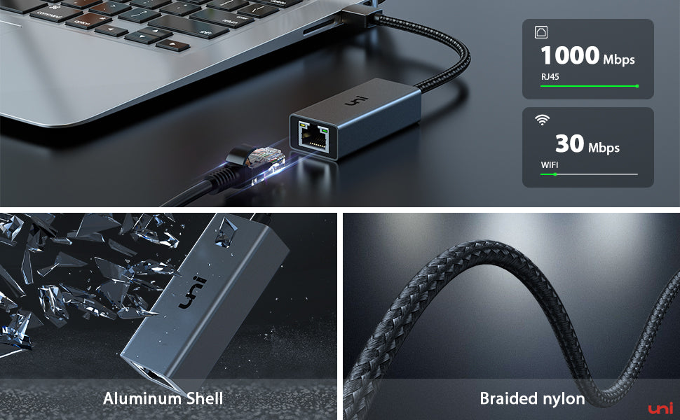Adaptador Uni USB-A a Ethernet para Nintendo Switch, computadora portátil y computadora.